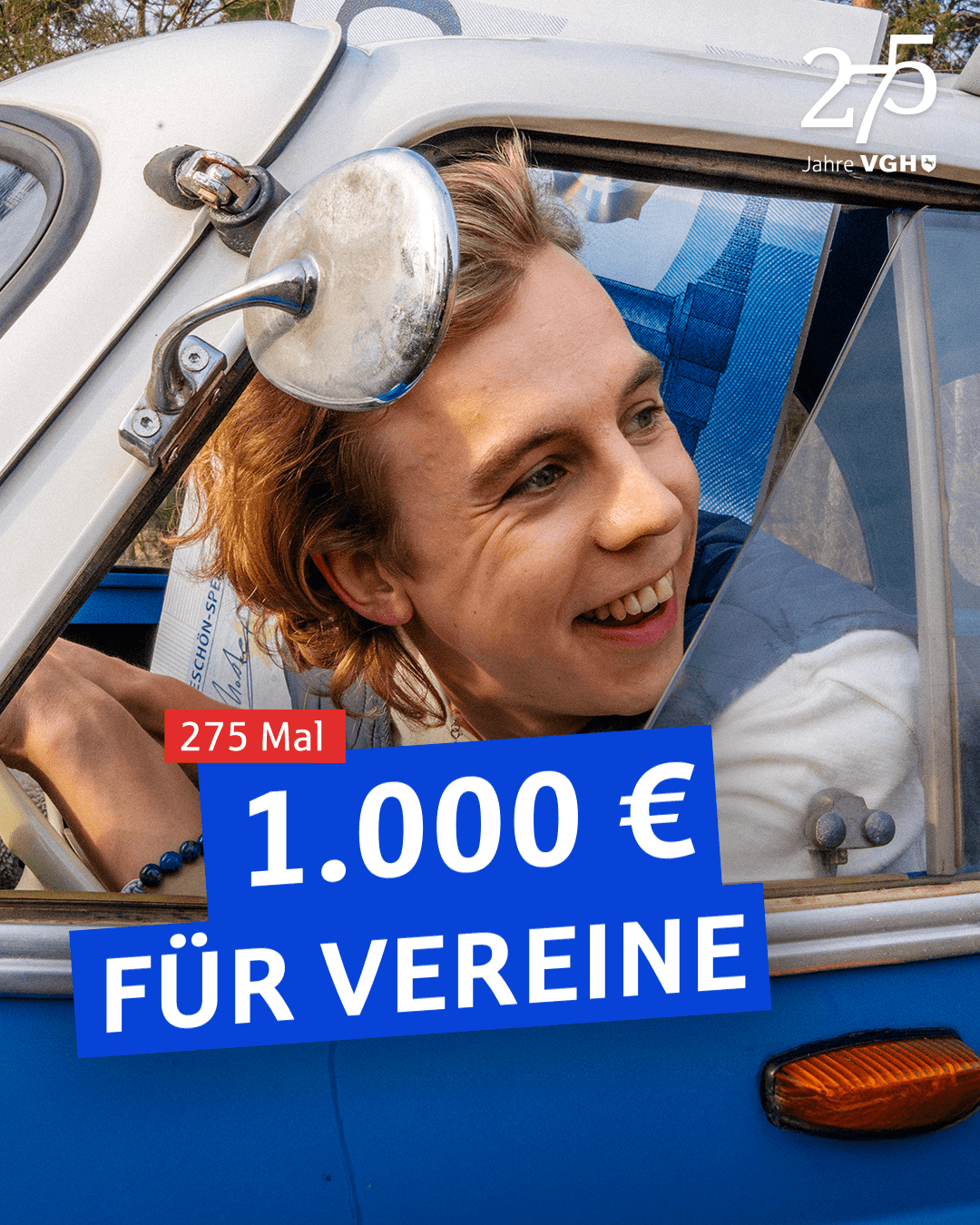 Die Kommunikation haben wir mit getargeten Social Media Reels übernommen, in denen unser Moderator Robin archetypische Vereine Besucht – auf einem Roadtrip durch Niedersachsen mit einer VGH-blauen Isetta. Neben Paid-Assets mit einer Laufzeit von 15s sind auch längere Content-Pieces für die Social Kanäle der VGH, den YouTube Kanal JetztLosleben und die VGH Website entstanden.