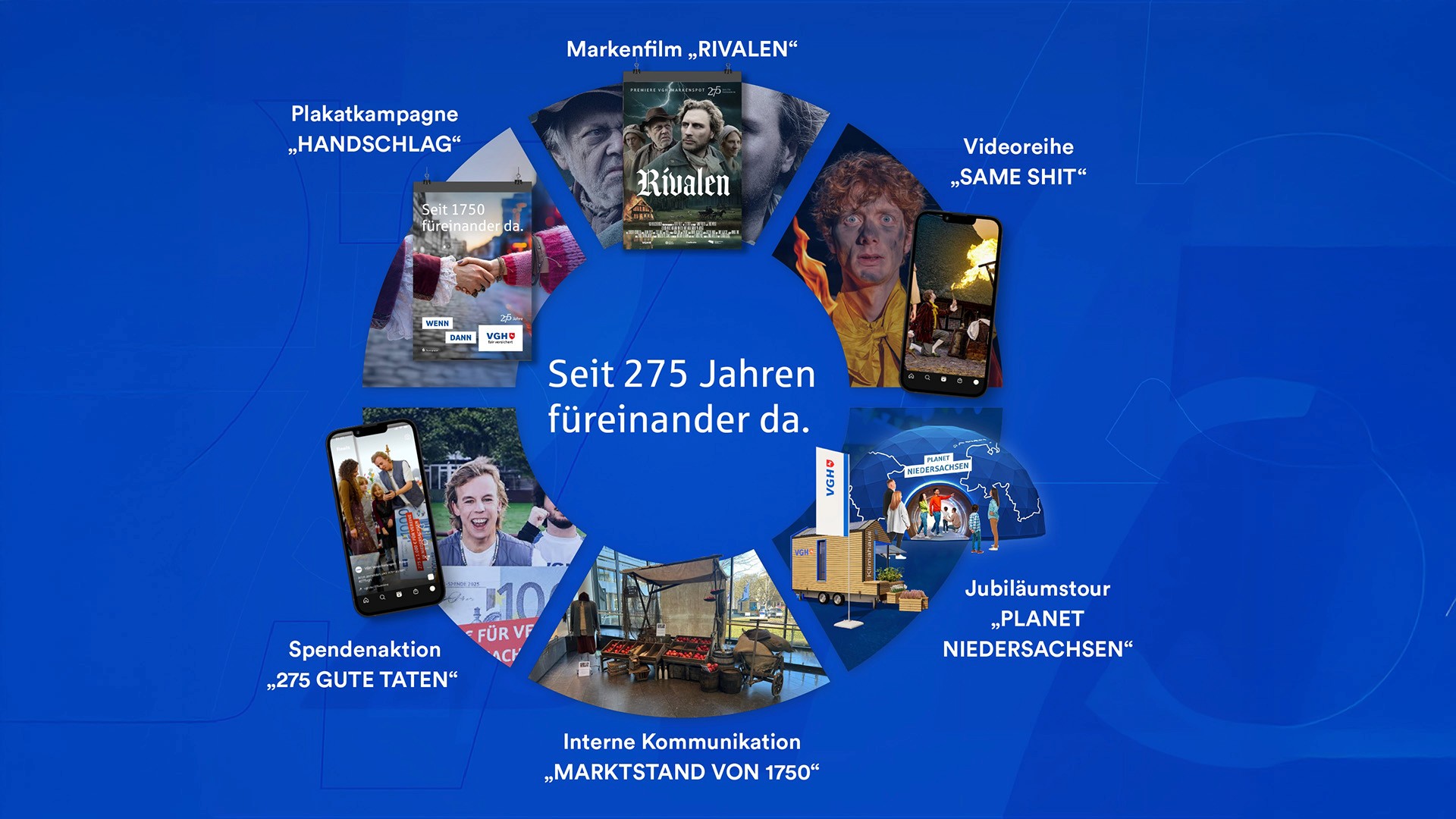 Zum 275-jährigen Jubiläum der VGH Versicherungen entstand die Social-Media-Kampagne „Same Shit“ – ein augenzwinkernder Zeitensprung von 1750 bis heute. Während der Hauptfilm „Seit 275 Jahren füreinander da“ auf Tradition und Markenstärke setzt, bringt „Same Shit“ denselben Gedanken in die Social Feeds der jungen Kunden: humorvoll, schnell, pointiert. Die Botschaft: Die Probleme sind geblieben – nur das Drumherum hat sich verändert. Und die VGH war immer da, wenn’s darauf ankam.